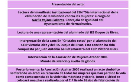 El Ayuntamiento de Hornachuelos celebrará un acto institucional el martes 25 de noviembre a las 12.00 horas en el Recinto Ferial “Las...