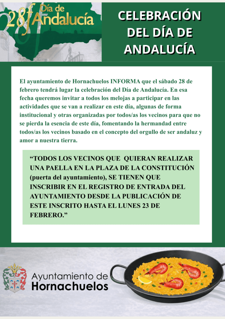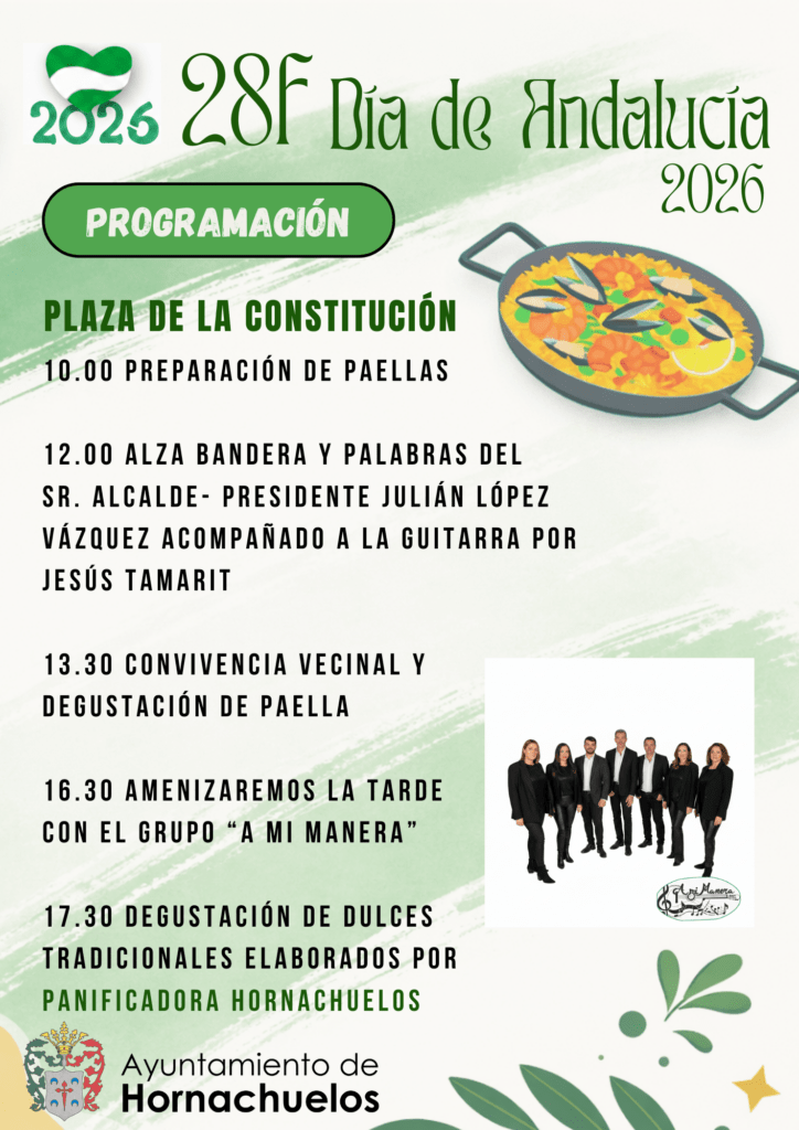 Cursos y Eventos Programación del Día de Andalucía 2026 en Hornachuelos Celebración del Día de Andalucía en Hornachuelos CONCURSO DE DECORACIÓN DÍA DE ANDALUCÍA 2026 Hornachuelos se prepara para vivir el Carnaval 2026 Musical infantil “Disne y Canto” – 13 de diciembre Programación de Actividades de Navidad 2025 y Reyes Magos 2026 JORNADAS FORMATIVAS PARA ESTUDIANTES 2025 - TURNO ESPECIAL DE DICIEMBRE VII Certamen “Unid@s Contra la Violencia de Género” 1 2 3 … 46 Siguiente »