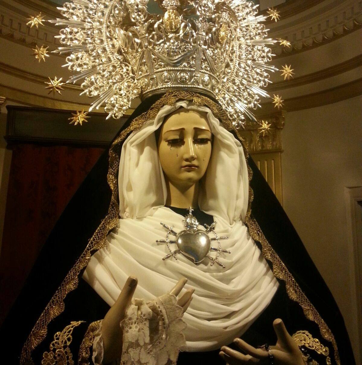 La Virgen, que no es otra que la misma imagen de la Virgen de los Dolores bajo otra advocación, regresa a las calles apenas una hora después de haber recogido del Santo Entierro. Es como si el pueblo no quisiera dejarla sola en su duelo. Si a las siete de la tarde acompañaba a su Hijo en su último recorrido, ahora, ya entrada la noche, vuelve a salir en busca de consuelo entre los suyos.