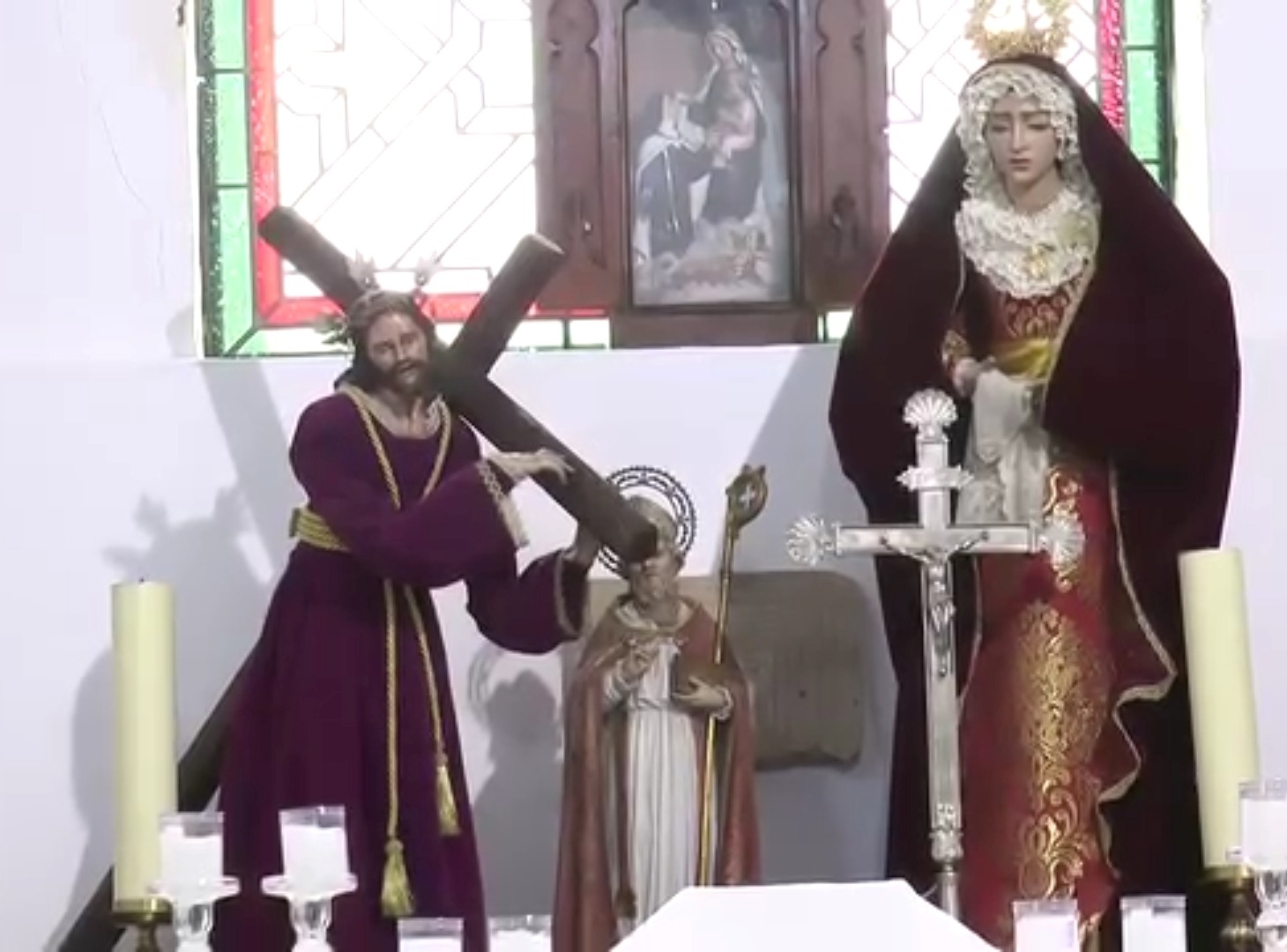 Los pasos, de carácter mixto, reproducen en pequeño las grandes devociones del pueblo. Salen en procesión la Nazarena y el Nazareno, pero en tallas adaptadas, réplicas de las imágenes que ya recorren las calles en los días grandes. Es, en cierto modo, un espejo a escala de la Semana Santa adulta, donde cada gesto tiene su reflejo en manos más pequeñas.