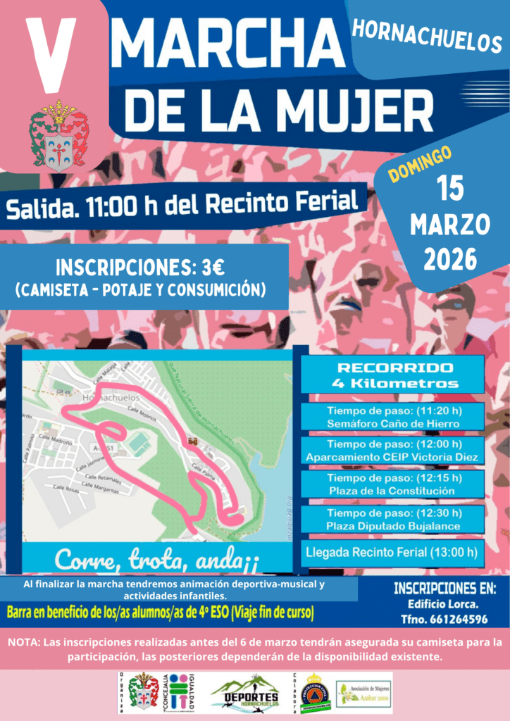 El Ayuntamiento de Hornachuelos organiza la V Marcha de la Mujer, una jornada de convivencia, deporte y celebración.